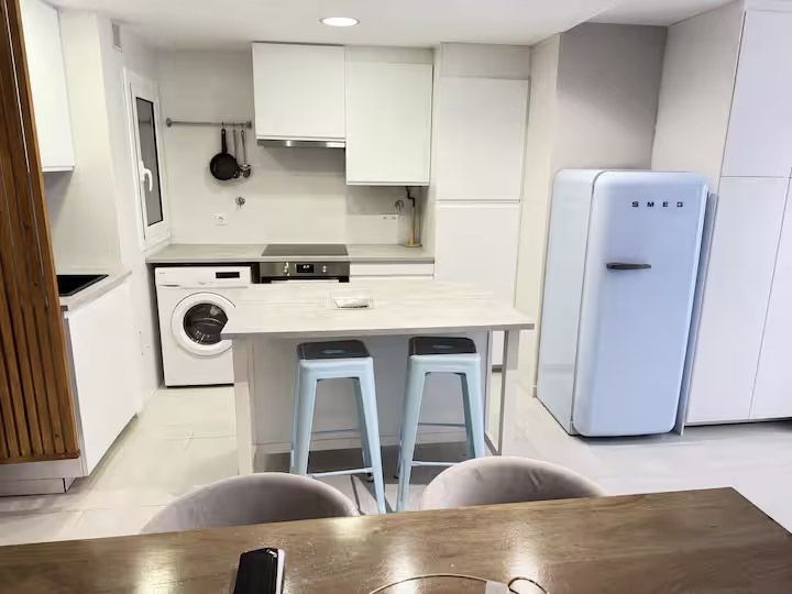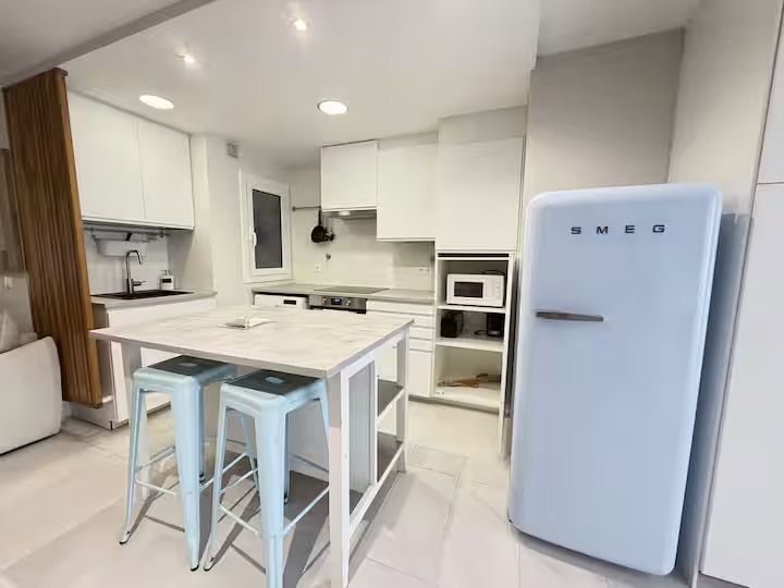 La cocina totalmente equipada con mesa de comedor, TV de pantalla plana y baño privado con ducha, artículos de aseo gratuitos y secador de pelo. También hay nevera, horno y microondas, además de cafetera Nespresso.